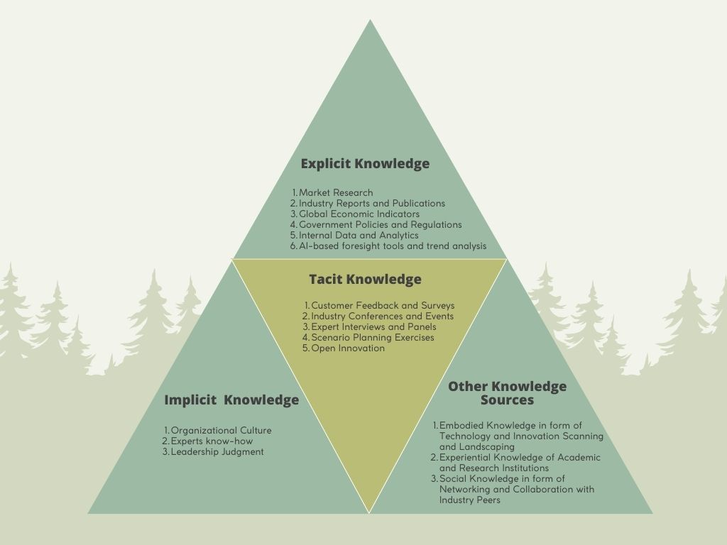In our work and interviews with foresight managers, they emphasize it is critical to use diverse sources of information and perspectives (see graphic) yet they admit typically they rely on explicit knowledge.