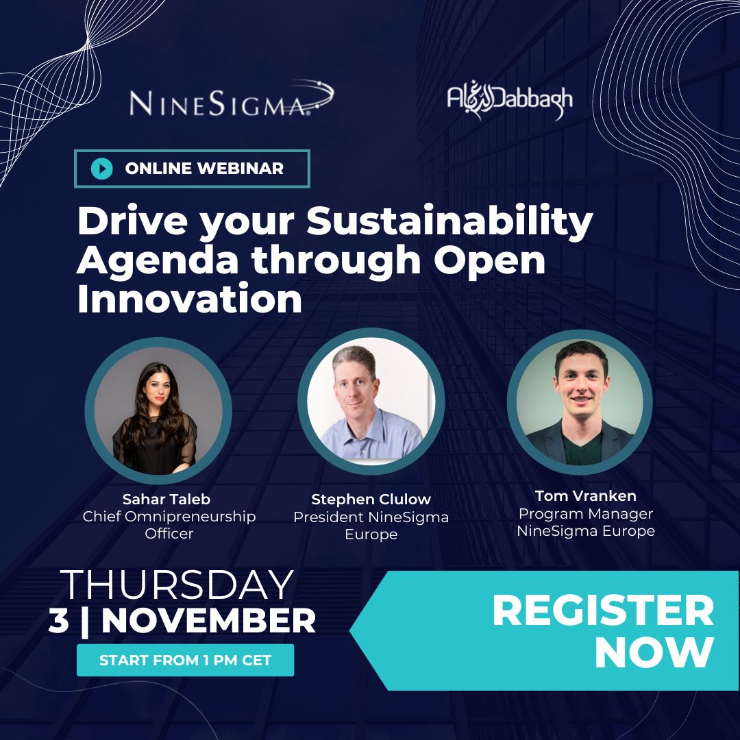 In this webinar, we are happy to have as a guest speaker Al-Dabbagh Group’s Chief Omnipreneurship Officer SAHAR TALEB and President of NineSigma Europe STEPHEN CLULOW.